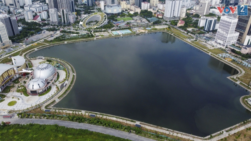 VOV.VN - Khu đất được quy hoạch để xây dựng Công viên hồ điều hòa Nam Trung Yên, quận Cầu Giấy, Hà Nội có tổng mức đầu tư dự kiến là 1.600 tỉ đồng, nay là nơi cỏ cây chen nhau mọc um tùm.