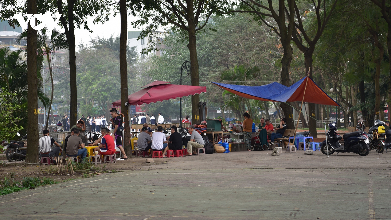 VOV.VN - Sau gần nửa năm tháo dỡ các công trình vi phạm nhưng đến nay, Công viên Tuổi trẻ Thủ đô (phường Thanh Nhàn, quận Hai Bà Trưng, Hà Nội) vẫn trong tình trạng nhếch nhác, hoang tàn. Khuôn viên “biến” thành “sới” chọi gà nhan nhản quán cóc “mọc” lên.