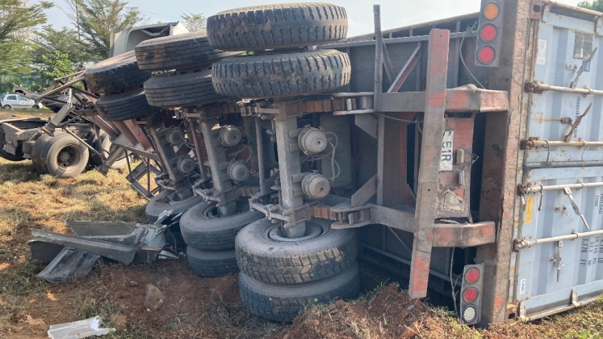 Xe container lao qua đường cán nát xe máy, người đàn ông kịp nhảy khỏi xe thoát chết