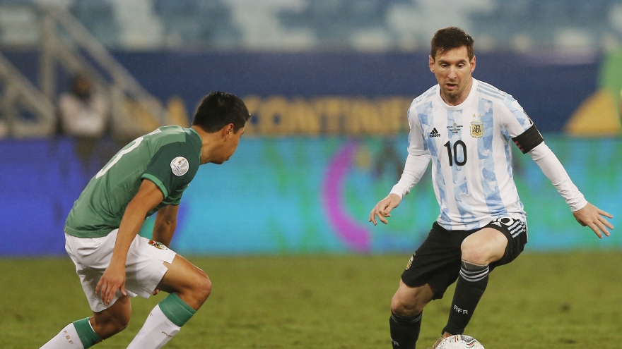 VOV.VN - Trong trận đấu Messi tỏa sáng với cú đúp bàn thắng và một pha kiến tạo, Argentina đánh bại Bolivia 4-1 để kết thúc vòng bảng Copa America 2021 với vị trí đầu tiên của bảng A.