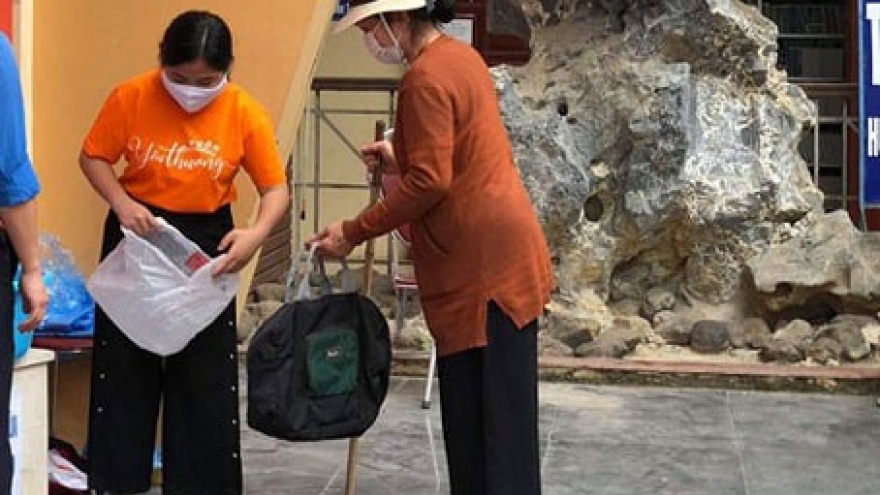 VOV.VN - Mỗi người đến ATM gạo miễn phí đều được hỗ trợ 3kg gạo. Thay vì dùng tay ấn nút lấy gạo, "máy ATM" rút gạo sử dụng chân để phòng tránh lây lan dịch.
