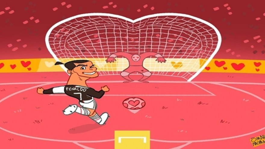 Biếm họa 24h: Cristiano Ronaldo "yêu say đắm" những quả penaltyVOV.VN - Cristiano Ronaldo đá penalty thành công giúp Juventus đánh bại Bologna và trở thành cầu thủ Bồ Đào Nha ghi bàn nhiều nhất ở Serie A.