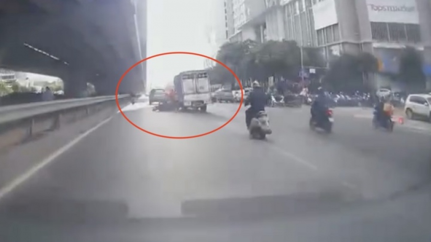 VOV.VN - Vào khoảng 17h50 ngày 15/12, lực lượng chức năng Trạm CSGT Tân Túc (thuộc Phòng CSGT Công an TP.HCM) xử lý hiện trường vụ xe đầu kéo chở theo các cuộn sắt văng khỏi rơ-moóc, trúng phương tiện đi đường trên QL1.