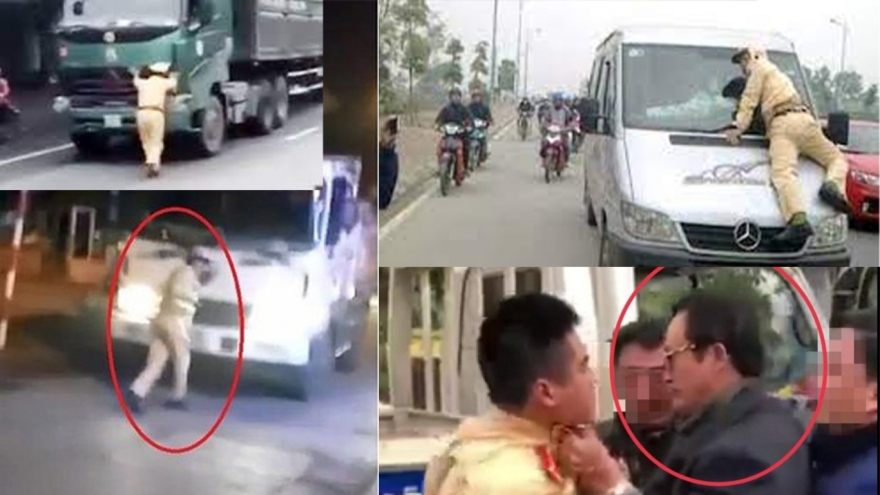 VOV.VN - Chiều 17/7, Cục CSGT (Bộ Công an) đã thông tin về vụ việc tài xế ô tô không chấp hành yêu cầu, giật giấy tờ trên tay CSGT, húc và kéo rê cảnh sát giao thông rồi bỏ chạy.
