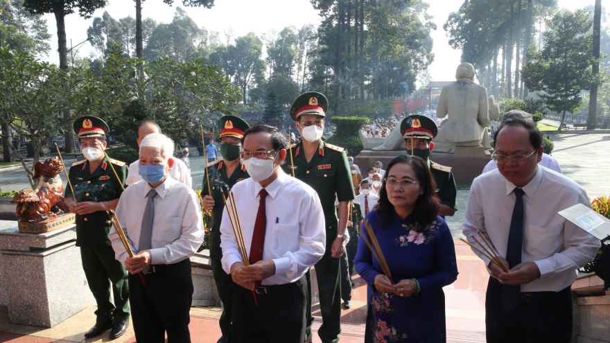 VOV.VN - Sáng 17/9, Đoàn đại biểu Thành ủy, HĐND, UBND, Ủy ban MTTQ Việt Nam TP.HCM do ông Nguyễn Văn Nên, Ủy viên Bộ Chính trị, Bí thư Thành ủy TP làm trưởng đoàn đến viếng và dâng hương tưởng niệm các anh hùng liệt sĩ tại Nghĩa trang liệt sĩ huyện Củ Chi.