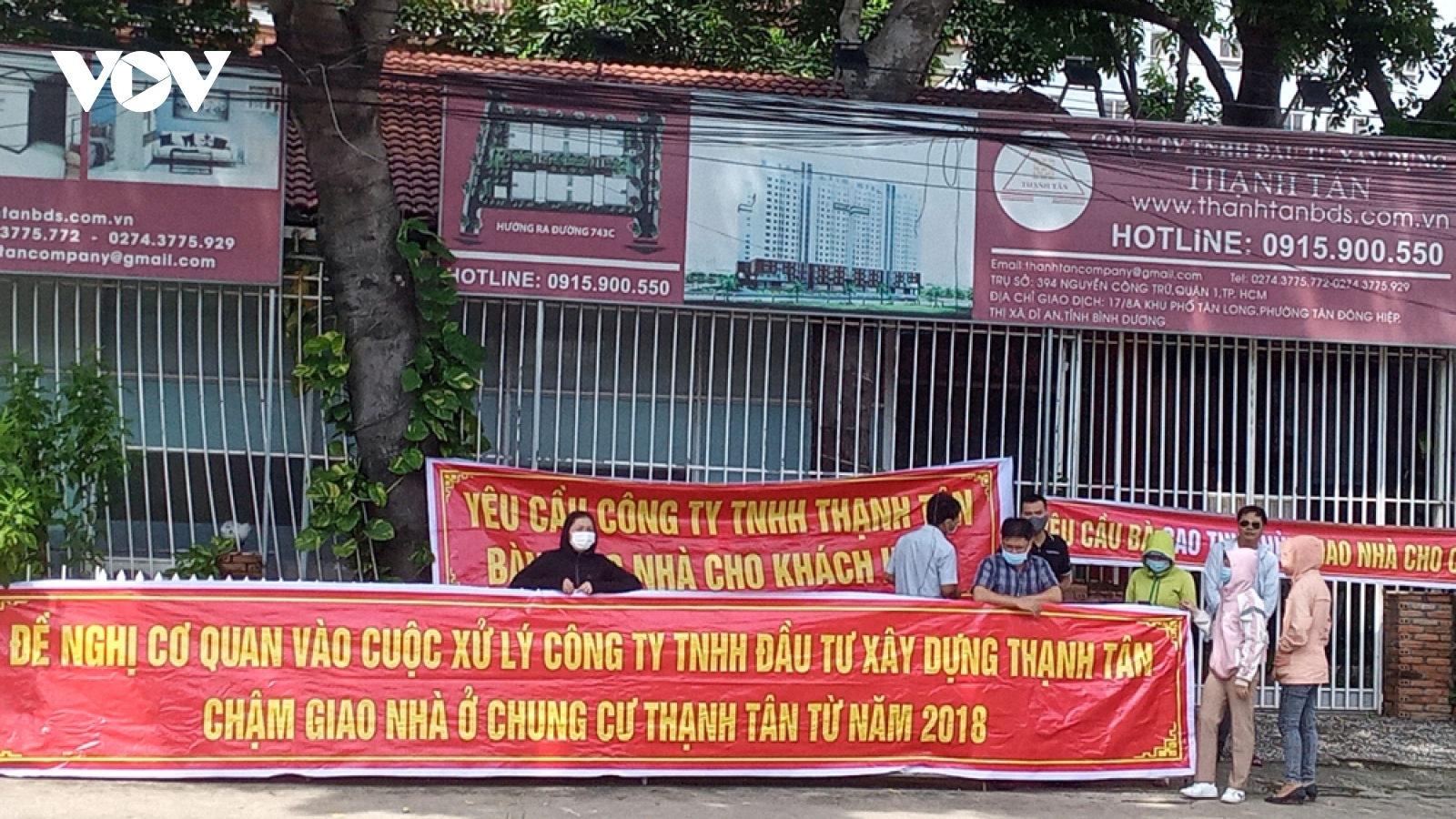 VOV.VN - Thời gian gần đây, hàng chục khách hàng mua căn hộ tại Dự án khu chung cư Thạnh Tân, ở thành phố Dĩ An, tỉnh Bình Dương căng băng rôn, biểu ngữ yêu cầu chủ đầu tư bàn giao căn hộ sau nhiều lần thất hẹn.