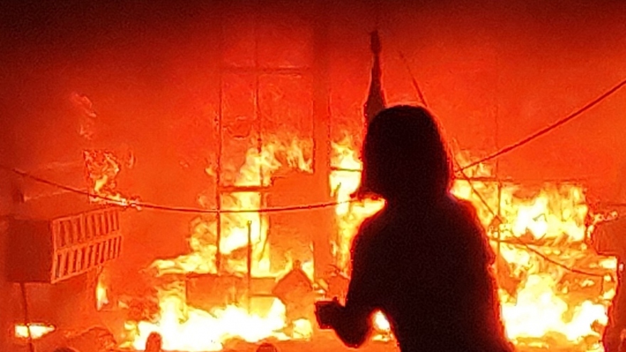 VOV.VN - Trong cơn mưa lớn, luồng giông sét được cho là đánh trúng vào máy in quảng cáo khiến một cửa hàng trên đường Phú Diễn (phường Cầu Diễn, quận Bắc Từ Liêm) bị thiêu rụi.