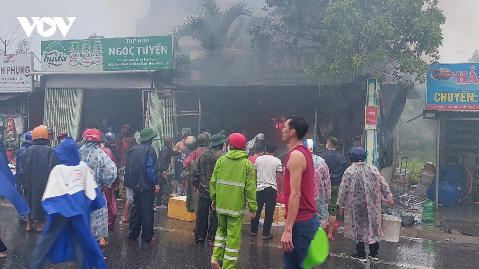 VOV.VN - Lúc 6h30 sáng 6/12, cửa hàng tạp hóa Sáu Bé của bà Mai Thị Lan, tại thị trấn Cửa Việt, huyện Gio Linh, tỉnh Quảng Trị bốc cháy dữ dội. Toàn bộ hàng hóa mới nhập về trữ để bán trong dịp Tết bị thiêu rụi.
