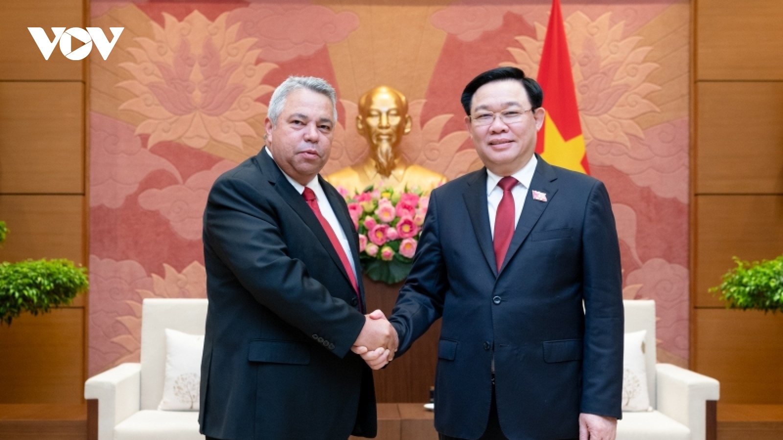 VOV.VN - Chiều 27/6, tại Nhà Quốc hội, Chủ tịch Quốc hội Vương Đình Huệ tiếp Đoàn Đại biểu cấp cao Trung tâm Những người lao động Cuba sang thăm làm việc tại Việt Nam do ông Ulises Guilarte de Nacimiento, Ủy viên Bộ Chính trị, Tổng Thư ký Trung tâm Những người lao động Cuba, Phó Chủ tịch Liên hiệp Công đoàn thế giới làm trưởng đoàn.