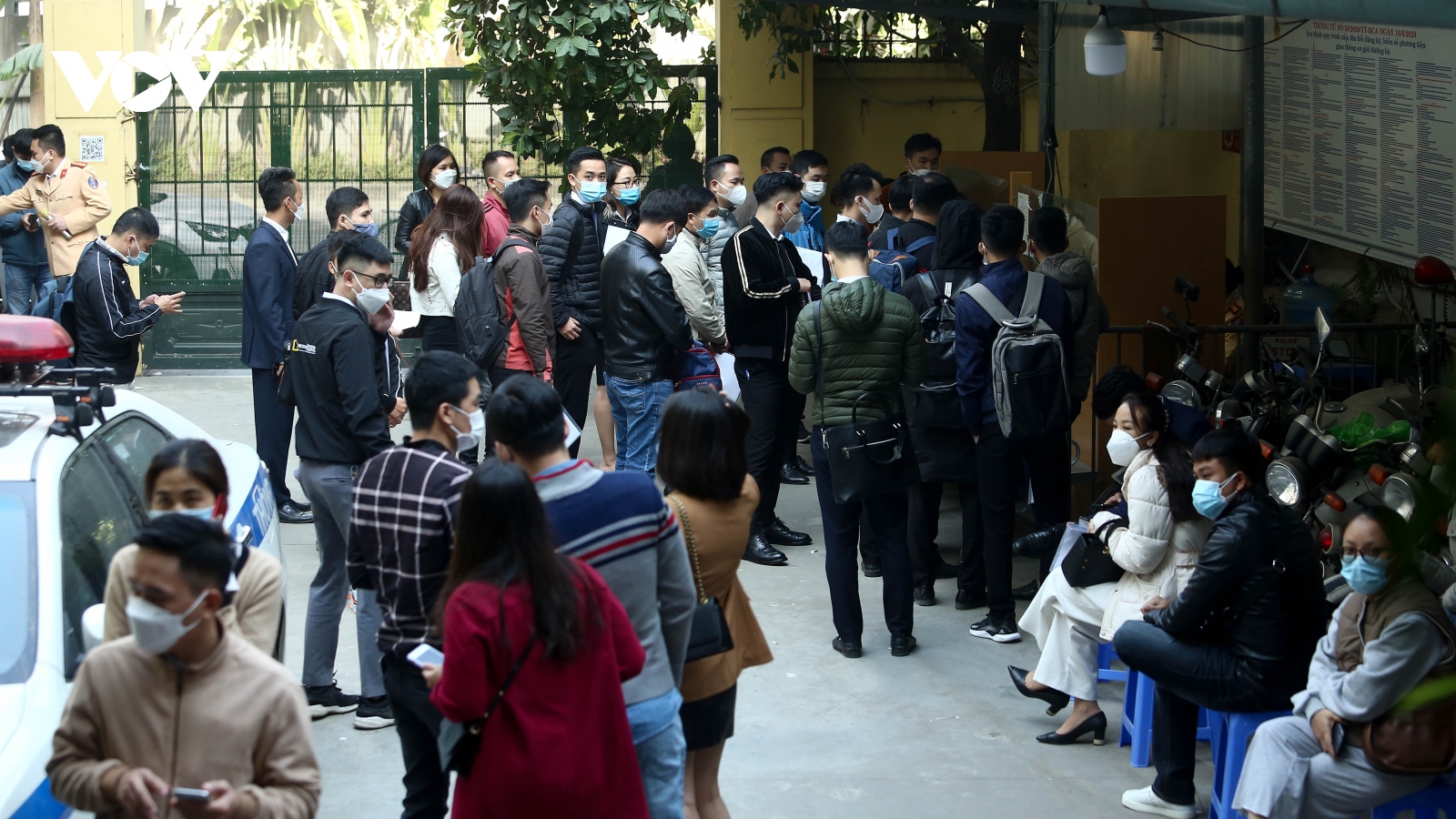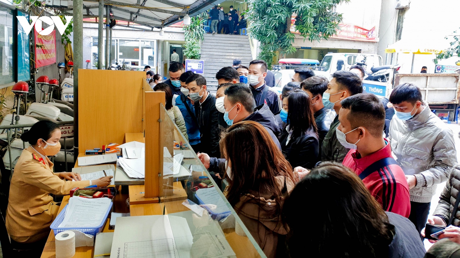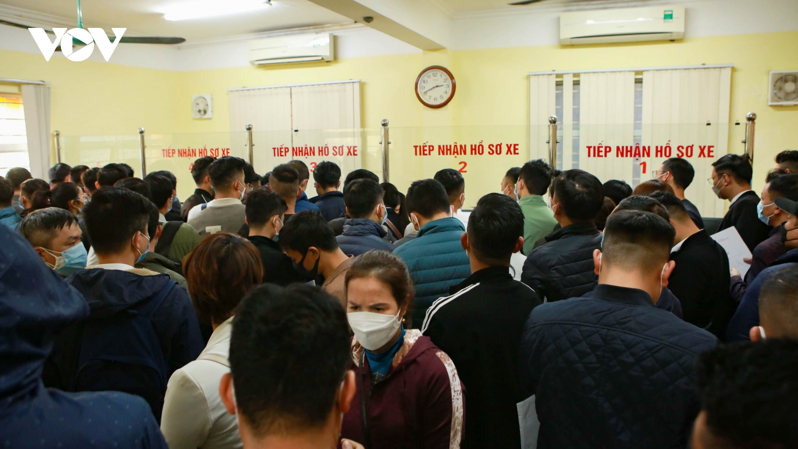 VOV.VN - Do mức thu phí trước bạ ô tô giảm 50% bắt đầu từ 1/12, nên tại một số điểm đăng ký xe tại Hà Nội xuất hiện tình trạng quá tải, lộn xộn, không đảm bảo 5K…