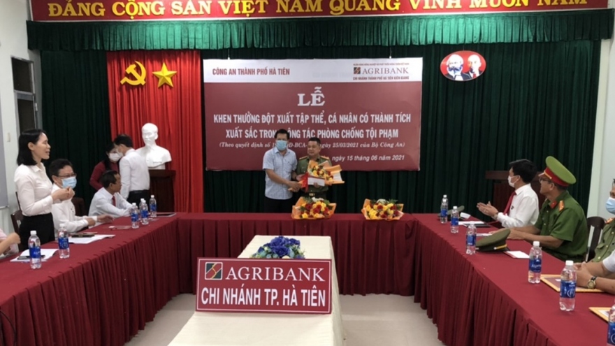 VOV.VN - Bộ Công an quyết định khen thưởng cho Đội bảo vệ ngân hàng Agribank chi nhánh TP Hà Tiên và Công an TP Hà Tiên vì đã có thành tích xuất sắc trong việc truy bắt đối tượng dùng súng cướp ngân hàng.