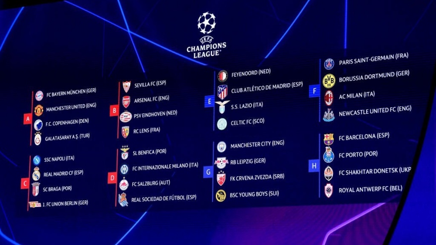VOV.VN - Kết quả bốc thăm vòng bảng Cúp C1 châu Âu 2023/2024: MU cùng bảng Bayern Munich trong khi PSG rơi vào bảng F tử thần cùng các đối thủ Newcastle, AC Milan và Dortmund.