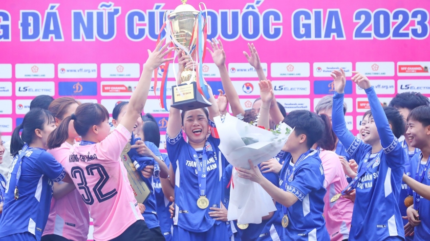 VOV.VN - Than KS Việt Nam vô địch Giải bóng đá nữ Cúp Quốc gia 2023 sau trận chung kết không tưởng với Hà Nội 1. Trận đấu phải giải quyết thắng thua trên chấm luân lưu sau khi 2 đội hòa 2-2. Ở loạt đá này, Than KS Việt Nam giành chiến thắng 5-4.