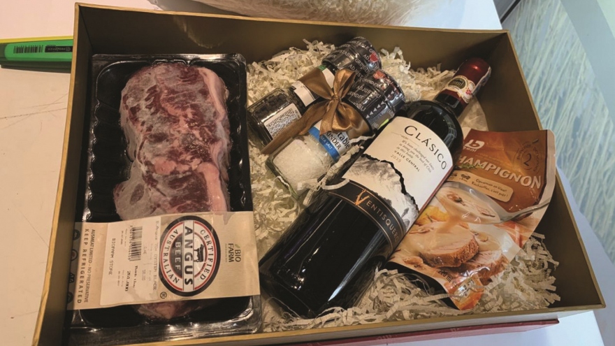 VOV.VN - Hộp thịt bò Kobe Nhật Bản kết hợp với bào ngư Australia, hay mẫu hộp quà chỉ có thịt bò tùy vào nhu cầu của khách đặt, giá mỗi hộp từ 2 - 15 triệu đồng.