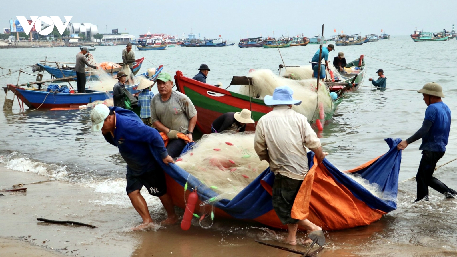 VOV.VN - Sau 3 giờ thả lưới gần bờ, những chiếc thuyền của ngư dân Vũng Tàu nối đuối nhau vào khu vực bãi Trước với những tấm lưới nặng trĩu cá mai khiến ngư dân phấn hởi, vui mừng vì kiếm tiền triệu sau chuyến ra khơi.