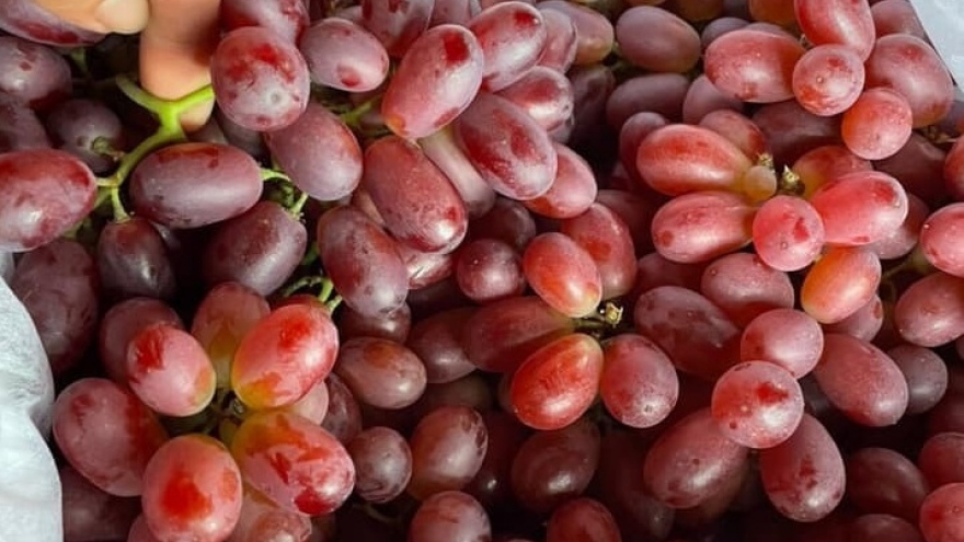 VOV.VN - Nho ruby không hạt, ăn giòn, ngọt, nặng từ 1- 2kg/chùm bán đầy các chợ với giá từ 55.000 - 75.000 đồng/kg đang được nhiều người Việt ưa thích thực chất là nho Trung Quốc.