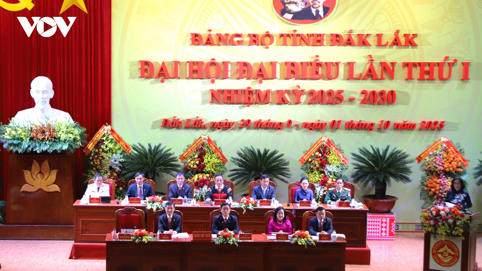VOV.VN - Sáng 1/10, sau gần 3 ngày làm việc khẩn trương, nghiêm túc, dân chủ và đoàn kết, Đại hội đại biểu Đảng bộ tỉnh Đắk Lắk lần thứ nhất, nhiệm kỳ 2025-2030 đã bế mạc, hoàn thành toàn bộ chương trình đề ra.