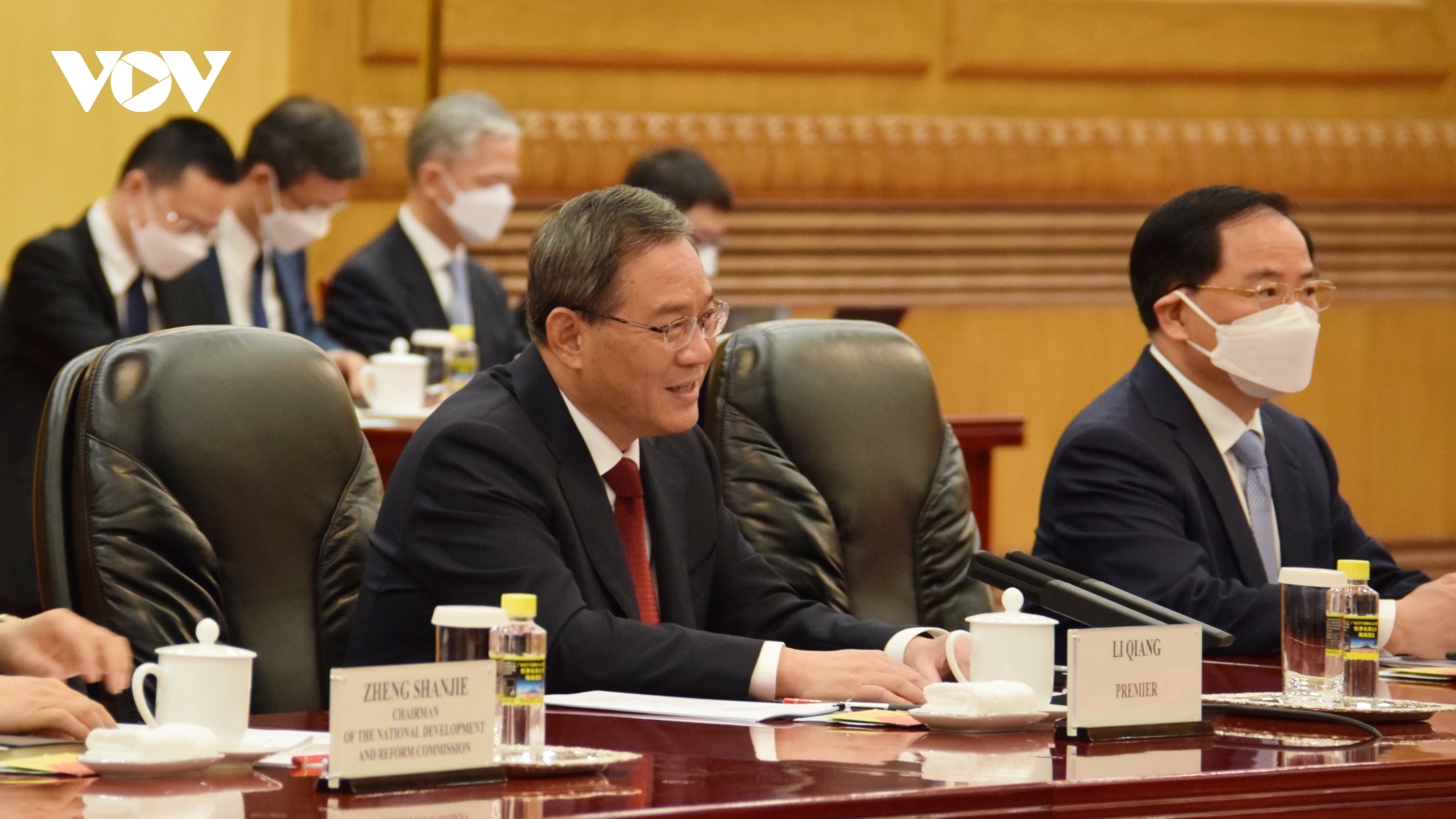 VOV.VN - Thủ tướng Lý Cường nhận định, hợp tác kinh tế thương mại giữa hai nước có mức độ bổ trợ cao và còn tiềm năng rất lớn; cho biết Trung Quốc sẽ mở cửa hơn nữa thị trường cho hàng hóa Việt Nam, nhất là nông thủy sản, hoa quả chất lượng cao của Việt Nam.