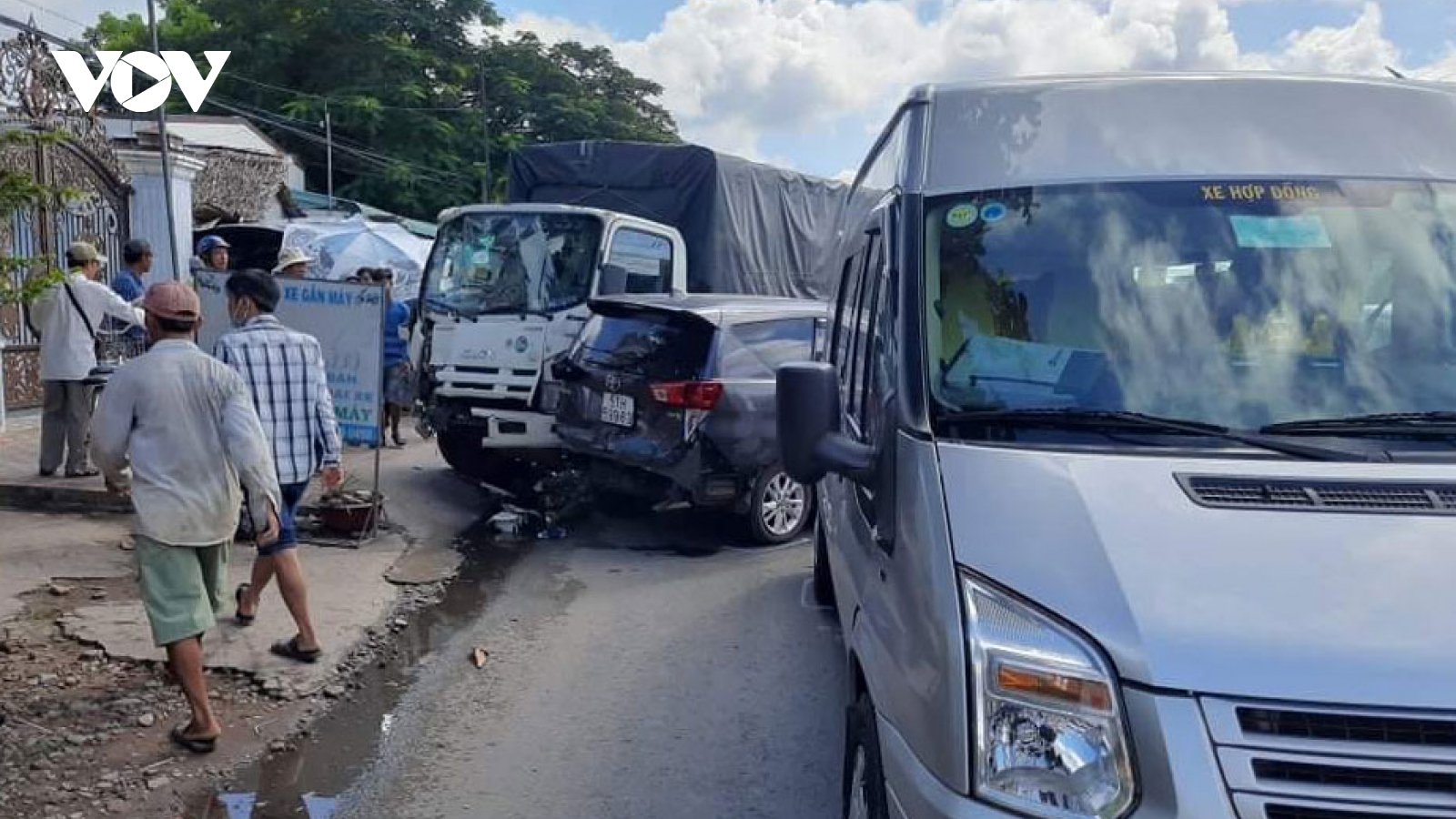 VOV.VN - Vụ tai nạn không gây thiệt hại về người nhưng nhiều phương tiện bị hư hỏng nặng, gây ra ùn ứ giao thông nghiêm trọng trên quốc lộ 1 nhiều km