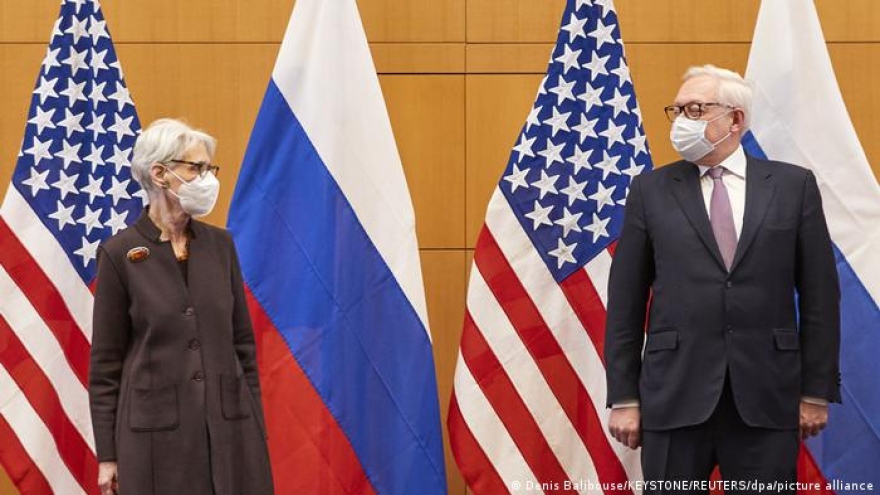 VOV.VN - Thứ trưởng Ngoại giao Mỹ Wendy Sherman và Thứ trưởng Ngoại giao Nga Sergei Ryabkov ngày 10/1 đã bắt đầu các cuộc đàm phán an ninh trong tuần này. Phía Mỹ cho biết hai bên đã không đạt được đột phá nào trong đàm phán liên quan tới cuộc khủng hoảng biên giới ở Ukraine.