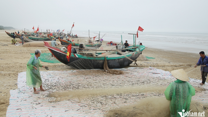Sau buổi ra khơi, ngư dân vùng biển Thạch Văn (TP Hà Tĩnh, tỉnh Hà Tĩnh) trở về với khoang thuyền đầy ắp cá trích. Mỗi chuyến đi, bà con đánh bắt được từ 7-9 tạ cá, thu về khoảng 4 triệu đồng mỗi ngày.