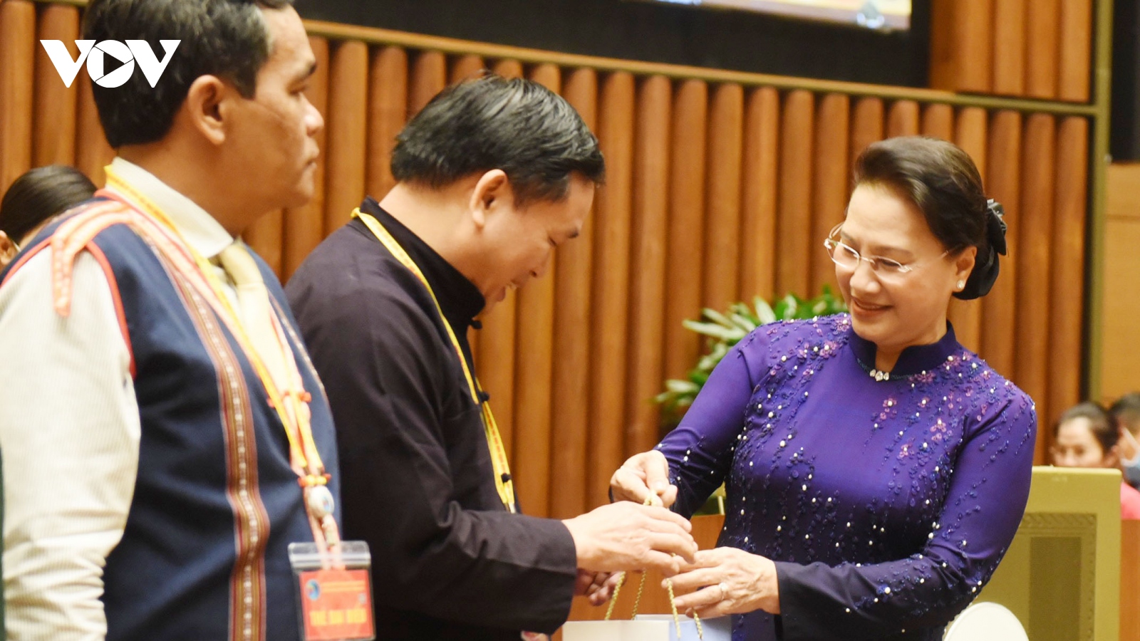 VOV.VN - Chiều nay, tại Nhà Quốc hội, Chủ tịch Quốc hội Nguyễn Thị Kim Ngân gặp mặt 100 Đại biểu tiêu biểu các các dân tộc thiểu số dự Đại hội dân tộc thiểu số toàn quốc lần thứ II năm 2020, đây là những đại biểu ưu tú của 54 dân tộc.