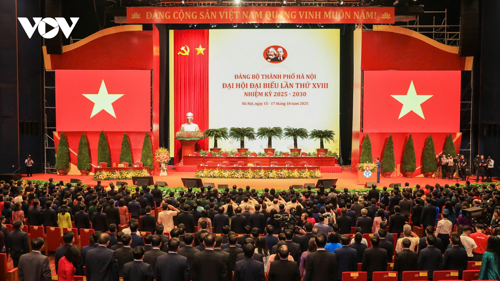 VOV.VN - Sau 3 ngày làm việc khẩn trương, dân chủ, nghiêm túc, Đại hội đại biểu Đảng bộ TP Hà Nội lần thứ XVIII, nhiệm kỳ 2025-2030 đã hoàn thành các nội dung đề ra và bế mạc chiều nay 17/10. Thường trực Ban Bí thư Trần Cẩm Tú dự phiên bế mạc.