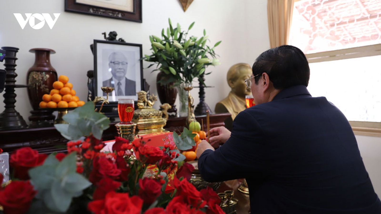 VOV.VN - Sáng 20/1, tức ngày 29 Tết, thay mặt lãnh đạo Đảng, Nhà nước, Thủ tướng Phạm Minh Chính cùng đoàn công tác của Trung ương đã đến dâng hương, dâng hoa, thăm hỏi chúc Tết Nguyên đán các gia đình cố Chủ tịch Hội đồng Bộ trưởng Phạm Hùng, cố Thủ tướng Phan Văn Khải, cố Thủ tướng Võ Văn Kiệt.