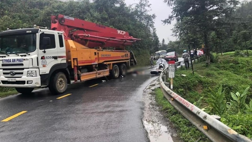 VOV.VN - Hậu quả, phần đầu chiếc xe bán tải bị hư hỏng nặng; bánh xe bên trái, phía trước của xe tải gãy rời khỏi xe; rất may không có thương vong về người.