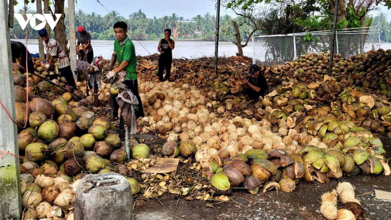 VOV.VN - Hiện nay dù trái dừa tươi và dừa khô ở tỉnh Bến Tre giá rất cao nhưng nhà vườn không đủ hàng để bán. Một trong những nguyên nhân chính là nhiều diện tích dừa bị giảm năng suất, thậm chí có biểu hiện chết rụi vì sâu đầu đen gây hại.