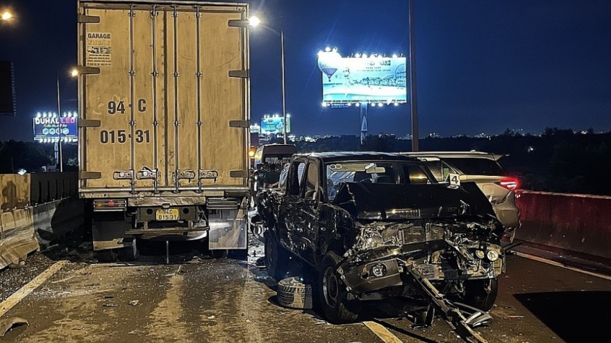 VOV.VN - Rạng sáng nay (3/8), lực lượng chức năng đã xử lý xong hiện trường vụ tai nạn liên hoàn giữa 9 xe ô tô trên cao tốc TP.HCM – Long Thành – Dầu Giây, khiến 7 người bị thương.