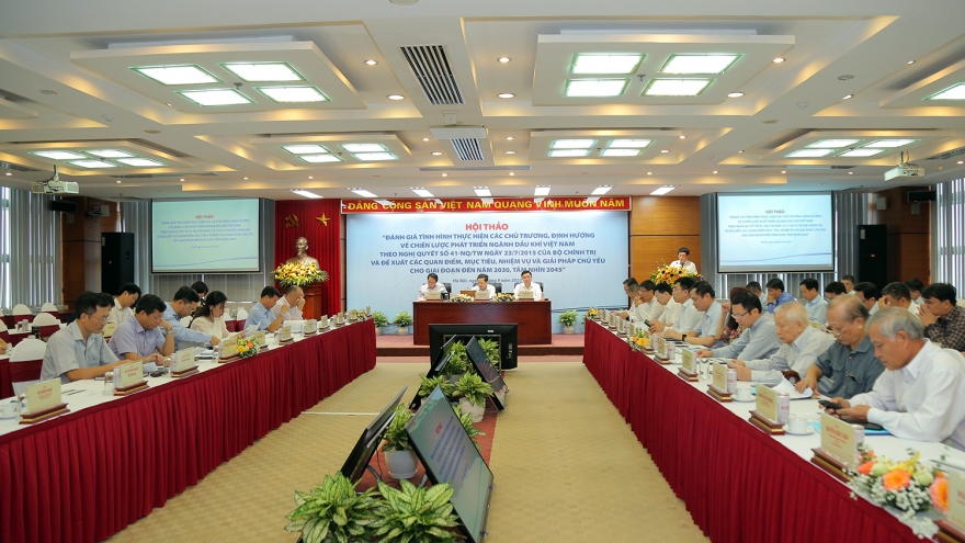 VOV.VN - Sáng ngày 8/9/2023 tại Hà Nội, Ban Kinh tế Trung ương phối hợp với Petrovietnam tổ chức Hội thảo “Đánh giá tình hình thực hiện các chủ trương, định hướng về chiến lược phát triển ngành dầu khí Việt Nam theo Nghị quyết số 41-NQ/TW ngày 23/7/2015 của Bộ Chính trị và đề xuất các quan điểm, mục tiêu, nhiệm vụ và giải pháp chủ yếu cho giai đoạn đến năm 2030, tầm nhìn 2045”.