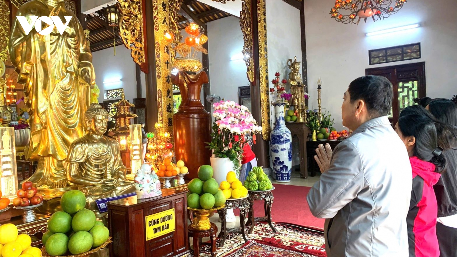 VOV.VN - Khác với không khí ồn ào, tấp nập của ngày thường, mùng 1 Tết Nguyên đán Ất Tỵ, không gian phố phường Thủ đô Hà Nội trở nên thanh bình, yên ả. Nơi thu hút đông đảo người dân Thủ đô và du khách là các ngôi đình, đền, chùa. Đến đây, mọi người đều có tâm nguyện cầu bình an, may mắn cho gia đình và người thân.