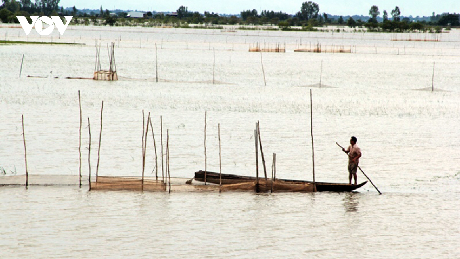 VOV.VN - Mùa nước nổi ở ĐBSCL bắt đầu từ tháng 7 đến tháng 11 âm lịch, khi con nước tràn bờ cũng là lúc người dân ở vùng đầu nguồn An Giang, Đồng Tháp mưu sinh bằng nghề đánh bắt những sản vật mùa nước nổi như cá linh, cua, ốc, tôm và hái bông điên điển.