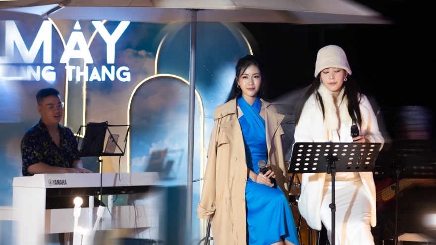 VOV.VN - Tối 27/4, Hoa hậu Mai Phương Thúy, Hoa hậu Đỗ Mỹ Linh, Á hậu Tú Anh, cặp đôi Á hậu Phương Nga và Bình An đã cùng tham dự buổi hòa nhạc của nam ca sĩ Noo Phước Thịnh.