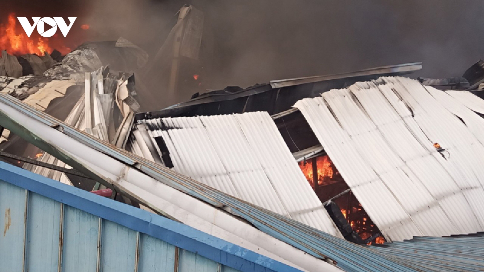 VOV.VN - Sáng nay (26/7), lực lượng chữa cháy Công an tỉnh Bình Dương đang nỗ lực dập tắt đám cháy tại một công ty rộng khoảng 8.000m2, ở phường Tân Bình, thành phố Dĩ An.