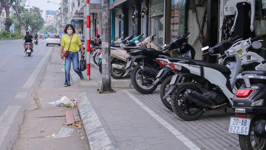 Ô tô, xe máy vẫn nghênh ngang đậu đầy vỉa hè dù Hà Nội quyết liệt xử lý