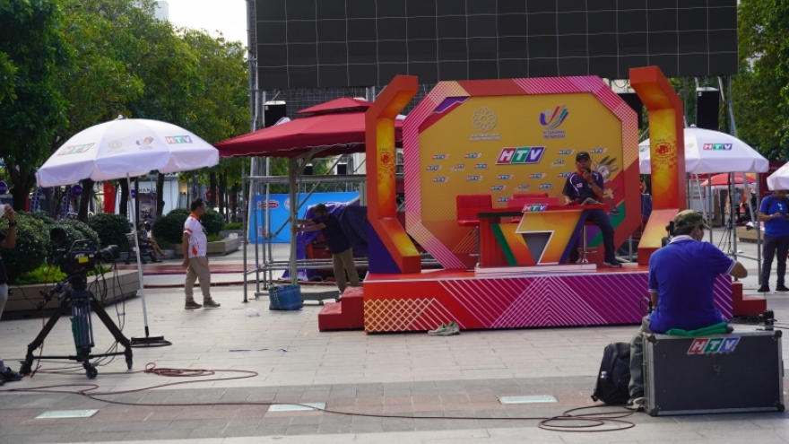 VOV.VN - Chiều nay (6/5), 5 màn hình Led cỡ lớn trên phố đi bộ Nguyễn Huệ (Quận 1, TP.HCM) đã sẵn sàng phục vụ người dân theo dõi trận mở màn bảng A môn bóng đá nam SEA Games giữa đội tuyển U23 Việt Nam - U23 Indonesia.
