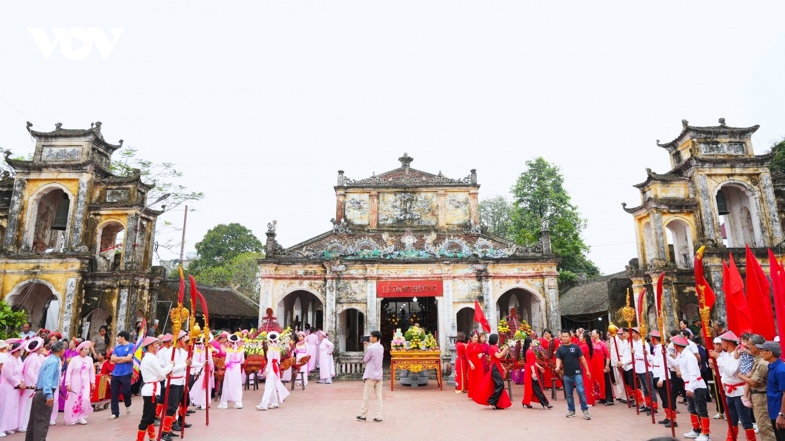 VOV.VN - Sáng 26/4, Đảng ủy, HĐND, UBND, UBMTTQ huyện Nam Trực, tỉnh Nam Định trang trọng tổ chức Lễ đón nhận Bằng xếp hạng Di tích lịch sử Quốc gia Đặc biệt Đền Xám.