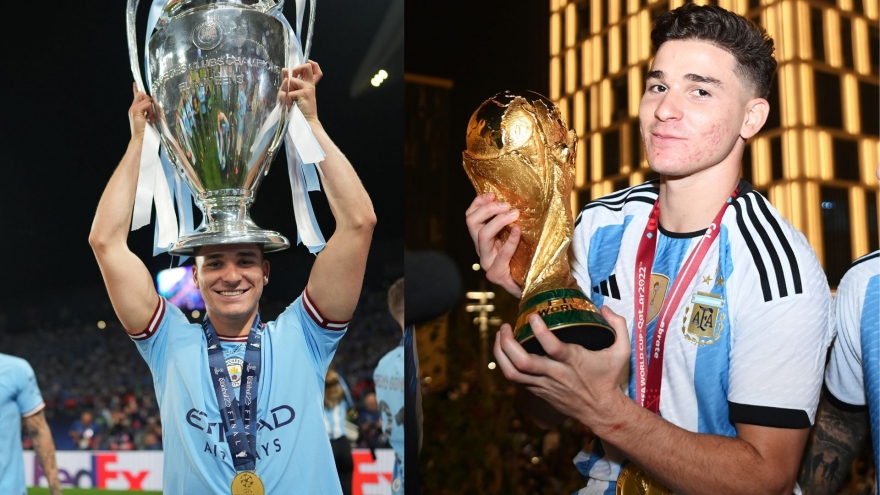 VOV.VN - Julian Alvarez đi vào lịch sử bóng đá khi trở thành cầu thủ đầu tiên giành chức vô địch World Cup với ĐTQG và cú ăn ba cấp CLB trong cùng một mùa giải.
