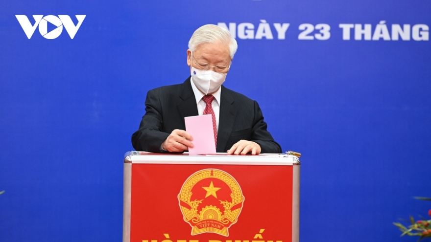 VOV.VN - Tổng Bí thư Nguyễn Phú Trọng bày tỏ tin chắc rằng, cuộc bầu cử sẽ thành công tốt đẹp, tạo không khí thật sự là một ngày hội toàn dân, ngày hội lớn của dân tộc ta, của non sông, đất nước ta.