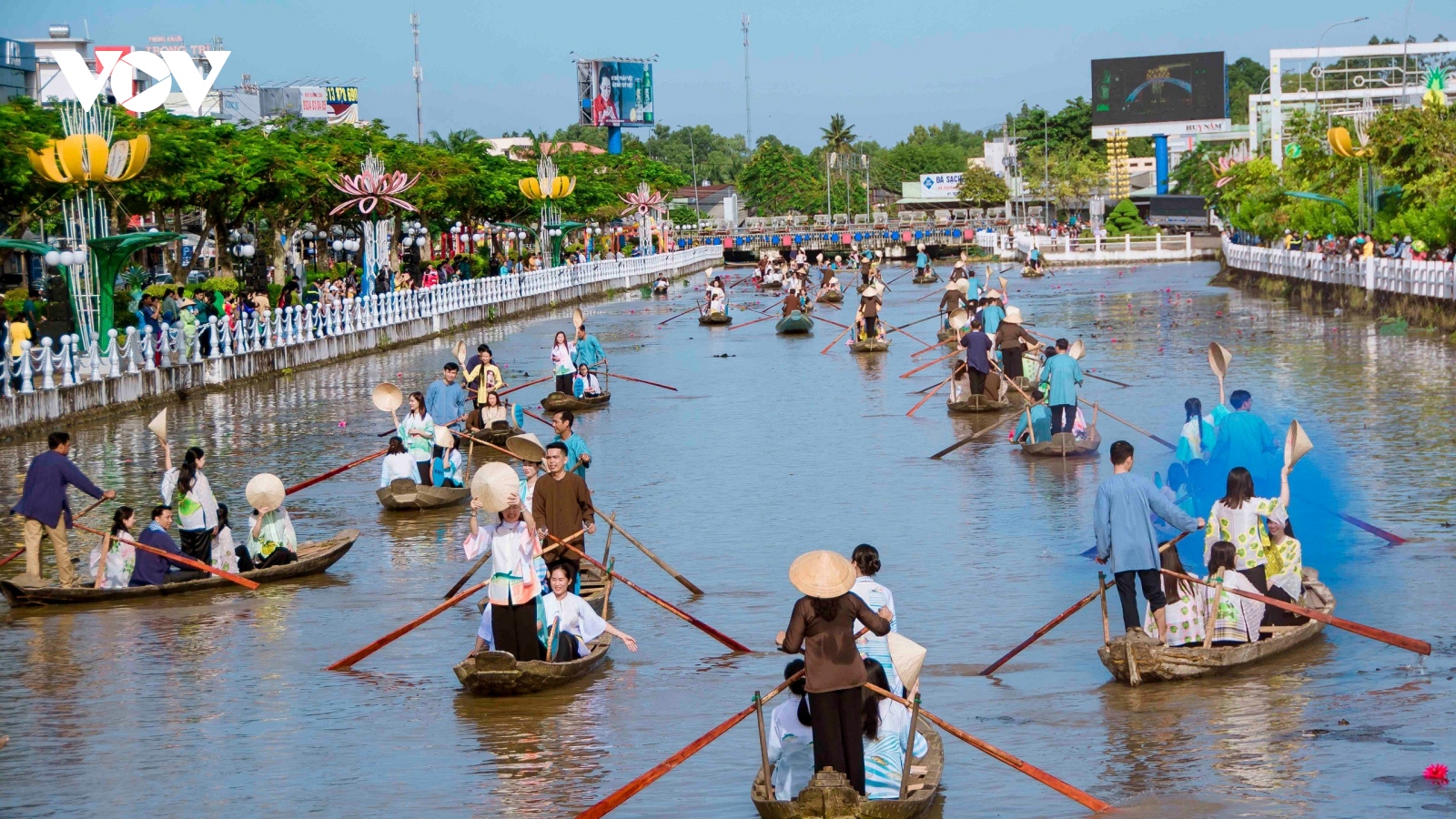 VOV.VN - Hôm nay 1/10, tại Kênh Mương lộ, cặp đường 3 tháng 2, phường 5, thành phố Vị Thanh, UBND tỉnh Hậu Giang tổ chức diễu hành áo bà ba trên sông. Đây là sự kiện nằm trong chuỗi hoạt động Festival Áo bà ba - Hậu Giang năm 2023.