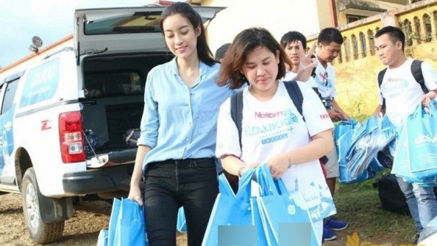 VOV.VN - Đỗ Thị Hà cùng người đẹp Lương Thùy Linh, Đỗ Mỹ Linh và các tình nguyện của chương trình "Triệu bữa cơm - Hà Nội nghĩa tình" đi phát cơm từ thiện tại xóm nghèo khu chợ Long Biên (Hà Nội).