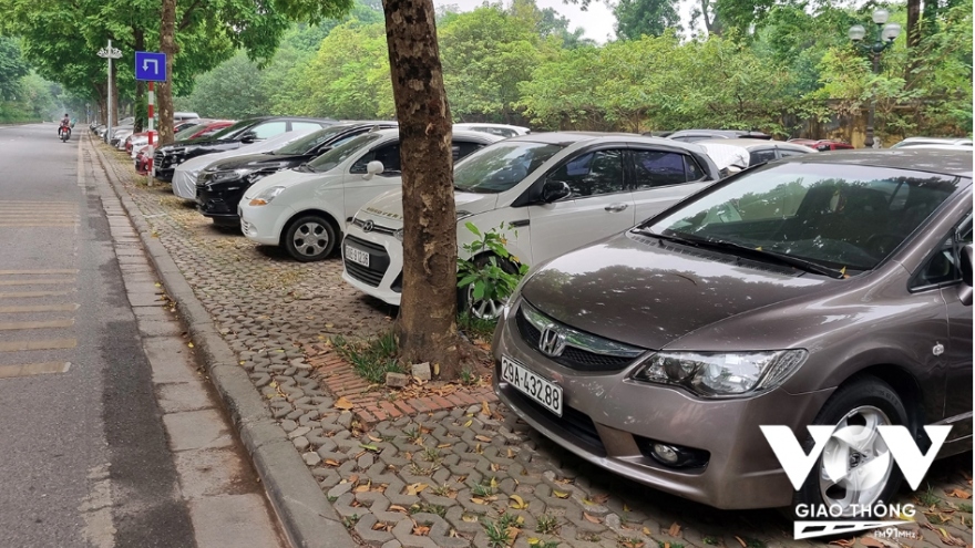 VOV.VN - Chuyện vỉa hè không còn dành riêng cho người đi bộ đã được VOV Giao thông đề cập nhiều lần, và chuyện ô tô đỗ trên vỉa hè, thậm chí ngay cả khi đang thi công, cũng không phải là mới.
