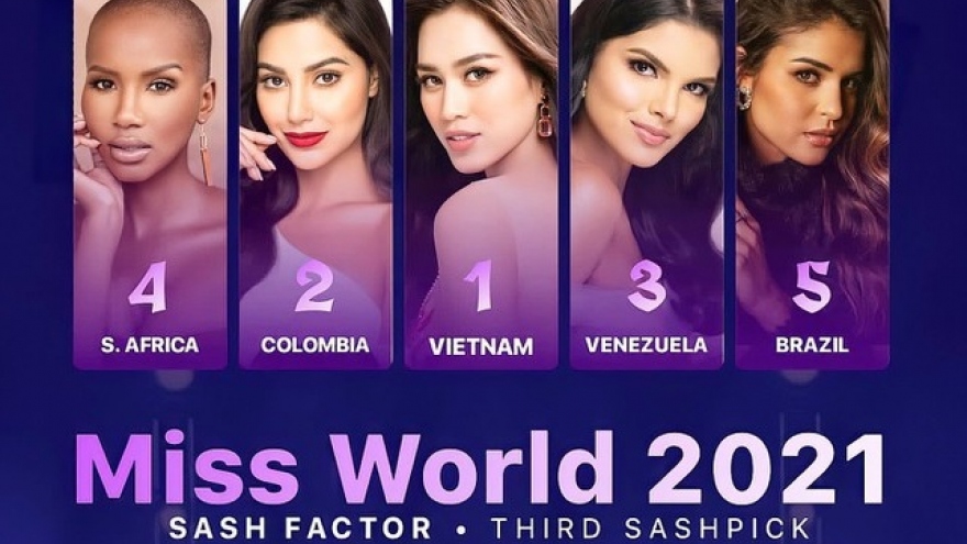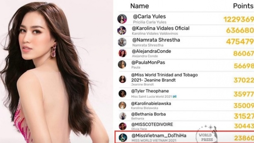 VOV.VN - Hoa hậu Đỗ Thị Hà đang đứng thứ 11 trên bảng xếp hạng của ứng dụng bình chọn chính thức của cuộc thi Miss World 2021, nhận được sự quan tâm của công chúng.
