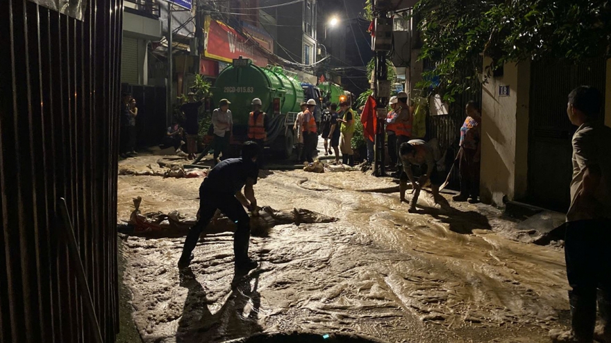 VOV.VN - Đơn vị thi công chi trả hỗ trợ cho 5 hộ dân sinh sống sát khu vực trào bùn bị che bạt, tạm thời chưa thể trở về nhà, được bố trí thuê khách sạn nghỉ ngơi qua đêm. Đồng thời, hỗ trợ 1 hộ kinh doanh bán hàng ăn tại đầu ngõ bị ảnh hưởng. Lực lượng chức năng tiếp tục dọn sạch sẽ khu vực vị ảnh hưởng