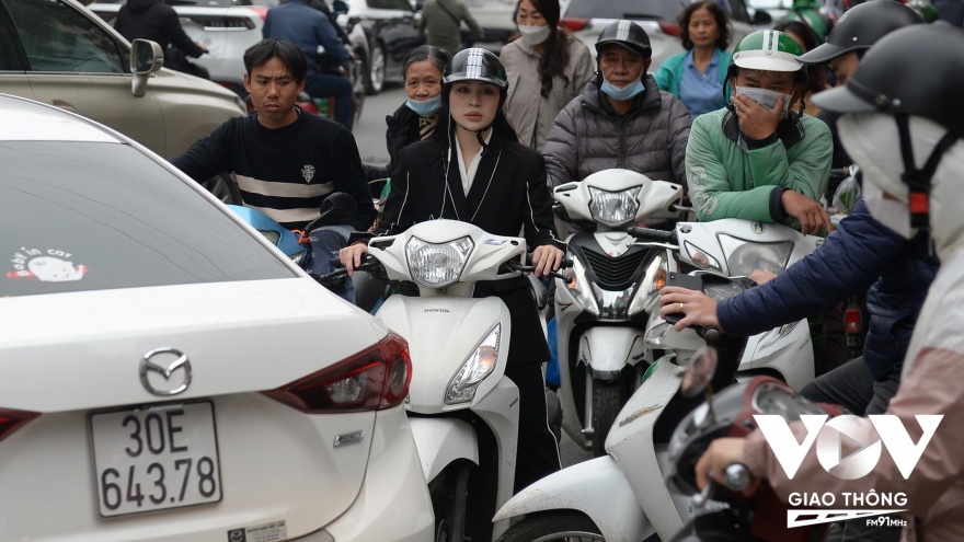 Vỉa hè, lòng đường Khương Đình ở Hà Nội bị chiếm dụng làm nơi trông giữ xe
