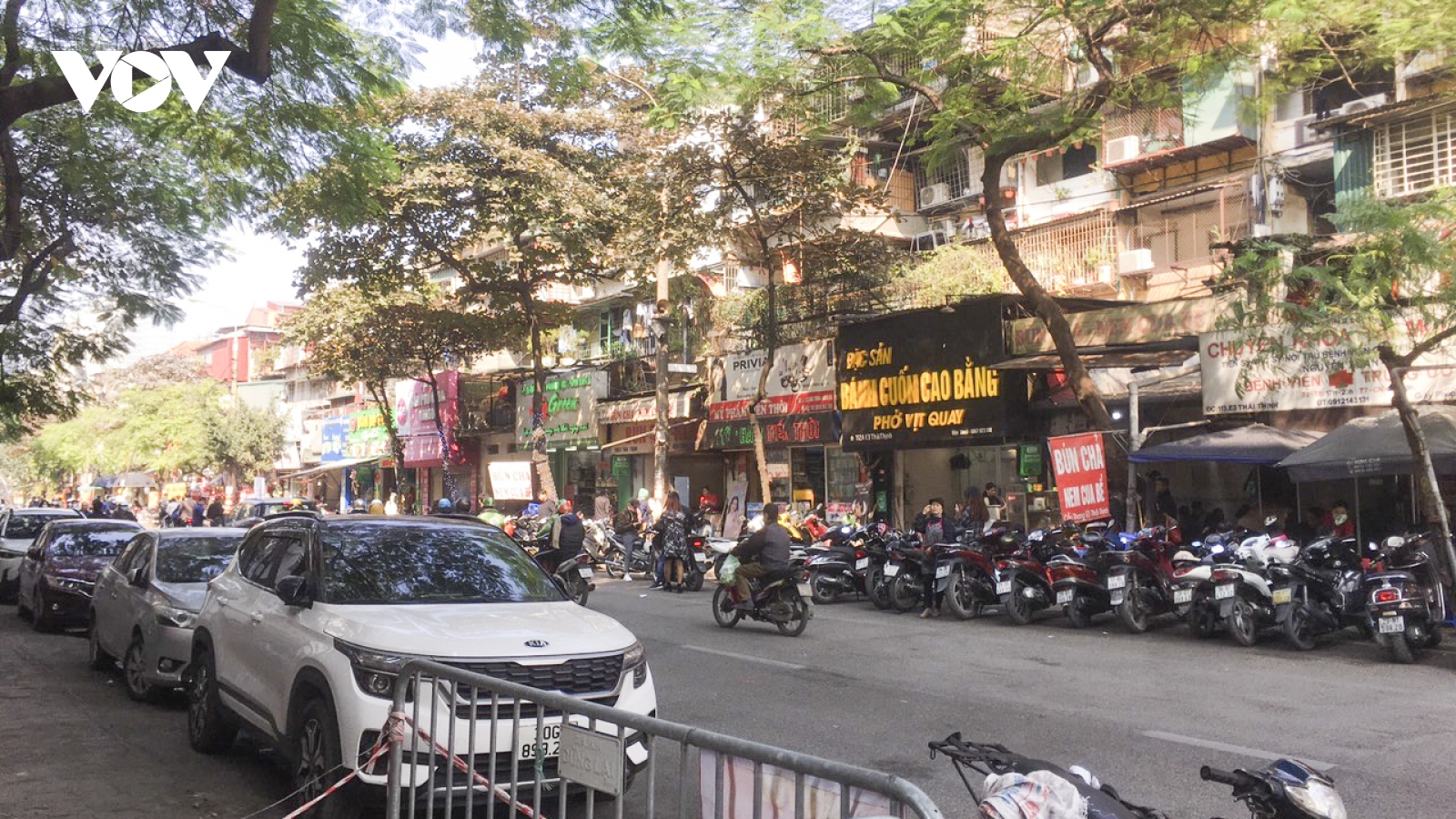 VOV.VN - Một loạt các hàng quán trên phố Thái Thịnh, Đống Đa, Hà Nội ngang nhiên, công khai biến lòng đường thành nơi dừng đỗ xe cho khách trong thời gian dài vừa qua. Không biết chính quyền và lực lượng chức năng có hay?