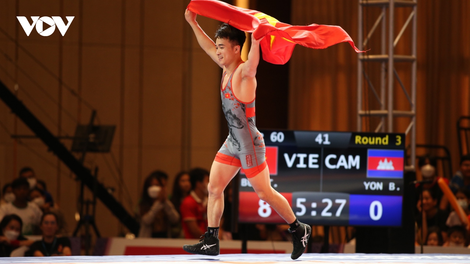 VOV.VN - Đoàn Thể thao Việt Nam giành thêm 8 HCV trong ngày thi đấu 11/5 để giữ vững vị trí dẫn đầu trên bảng tổng sắp huy chương SEA Games 32 với tổng cộng 58 HCV.