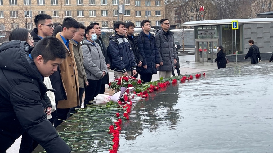 VOV.VN - Kỷ niệm 91 năm ngày thành lập Đoàn TNCS Hồ Chí Minh, Ban cán sự đoàn tại LB Nga đã chủ trì, phối hợp với các tổ chức Đoàn thuộc nhiều trường Đại học ở thủ đô Matxcơva tổ chức lễ dâng hoa tại tượng Đài chủ tịch Hồ Chí Minh.